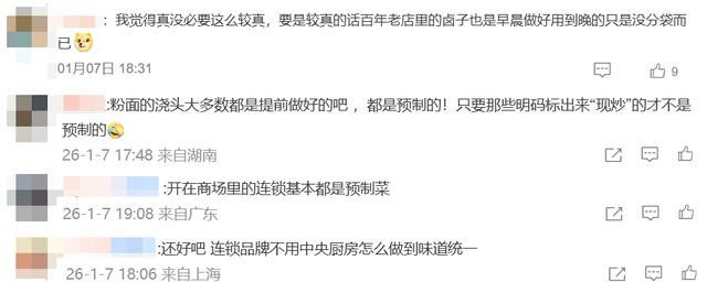 1月7日,和府捞面客服回应称“产品符合国家标准,浇头由中央厨房统一配送,并非预制菜”。对于是否为当天由中央厨房配送到门店的问题,客服回答对配送问题不清楚。